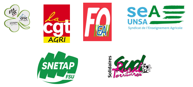 L’ intersyndicale Alliance du Trèfle, FO-EA, CGT Agri, SEA-UNSA, SNETAP-FSU, Sud Rural territoires du MASA