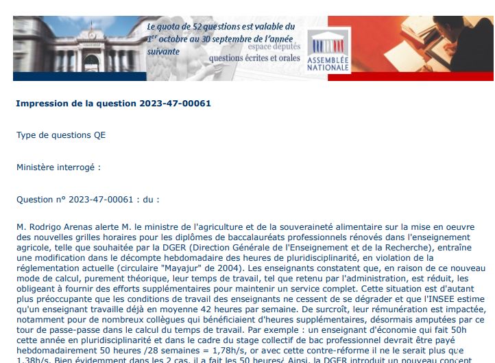 Déclaration liminaire FO Enseignement Agricole CREA Nouvelle -Aquitaine le 19 octobre 2023