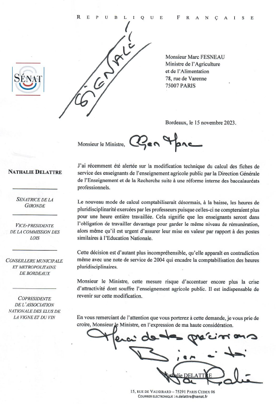 Courrier de soutien