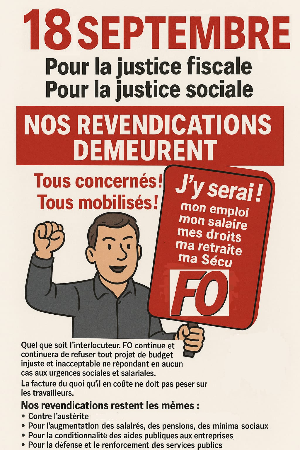 C’est pourquoi, la FGF-FO s’inscrit dans l’appel à la grève reconductible de la Confédération FO à compter du 18 septembre 2025.