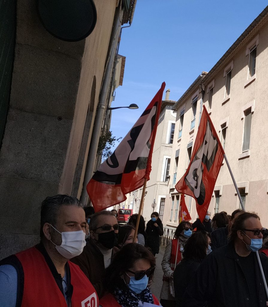 Le 8 avril 2021, à l’appel de l’intersyndicale de l’enseignement agricole public de la région Occitanie, des dizaines de personnels, professionnel.les, parents et élu.es se sont rassemblées devant le lycée agricole de Carcassonne, puis devant la Préfecture. Une délégation a été reçue par la directrice de cabinet du préfet qui s’est engagée à transmettre les revendications des manifestant.es.