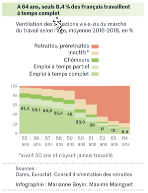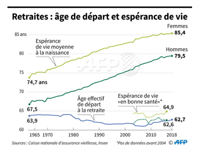 Aussi, les politiques omettent volontairement de parler de l’espérance de vie en bonne santé, qui à ce jour est de 63 ans pour les hommes et 65 ans pour les femmes. Partir en retraite à 65 ans ou plus pour ceux qui n’auront pas leurs trimestres (67 ans ? 69 ans ?… Macron n’est pas clair sur ce point…) signifiera probablement de ne plus pouvoir totalement en profiter faute d’une santé suffisante.