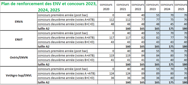 Renforcement pour les quatre écoles nationales vétérinaires (Alfort, Lyon, Nantes et Toulouse) afin d’accompagner les besoins de la profession.