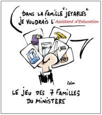 | – Les AE se mobilisent à partir du 22 mars ! – Les quoi ? – Ben les AE, les assistants d’éducation…. – ??????? – Les pions, les surveillants quoi ! – Ah !!! eux. | ![]() |